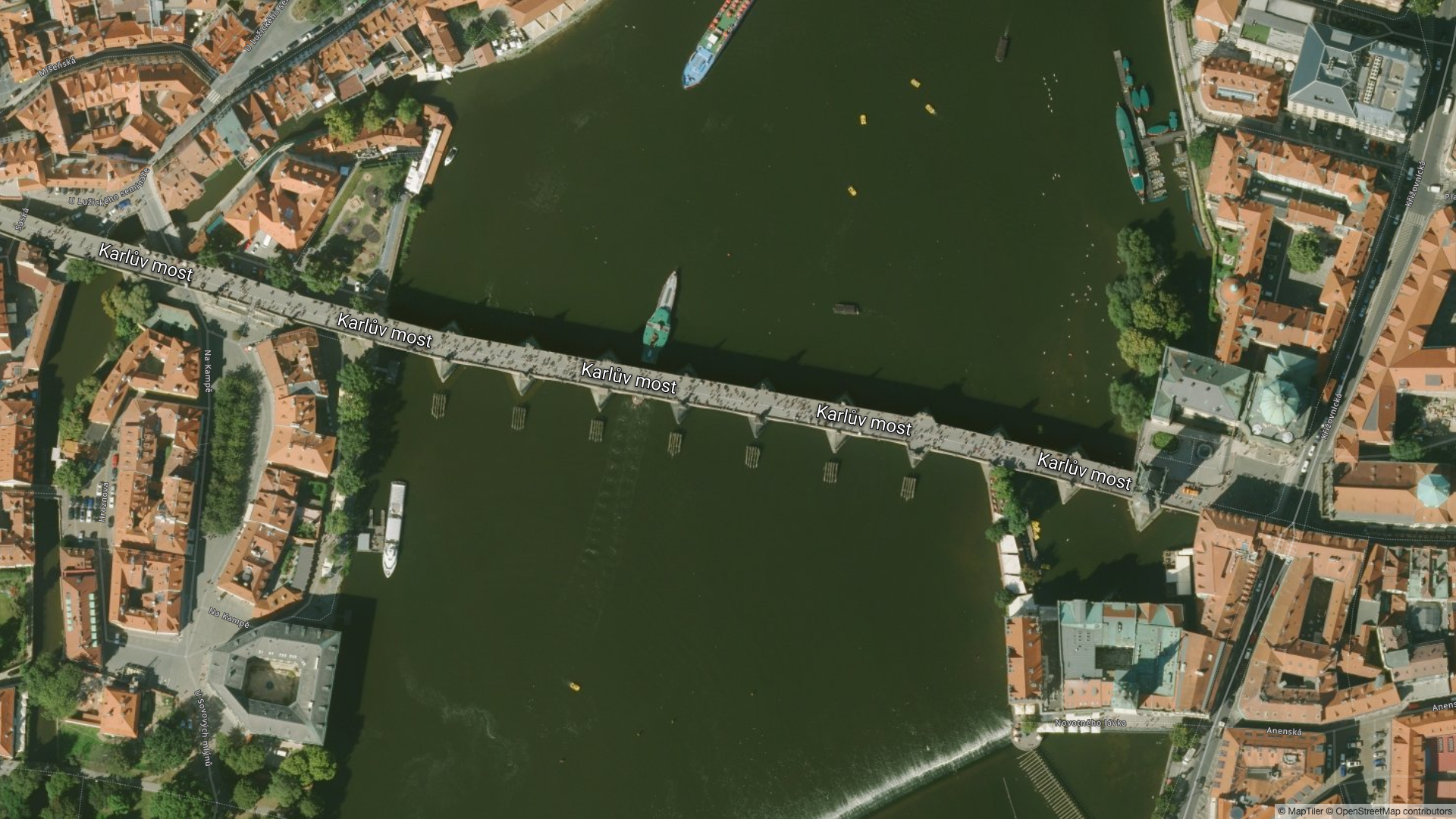Satelitní pohled na Prahu v podání MapTileru