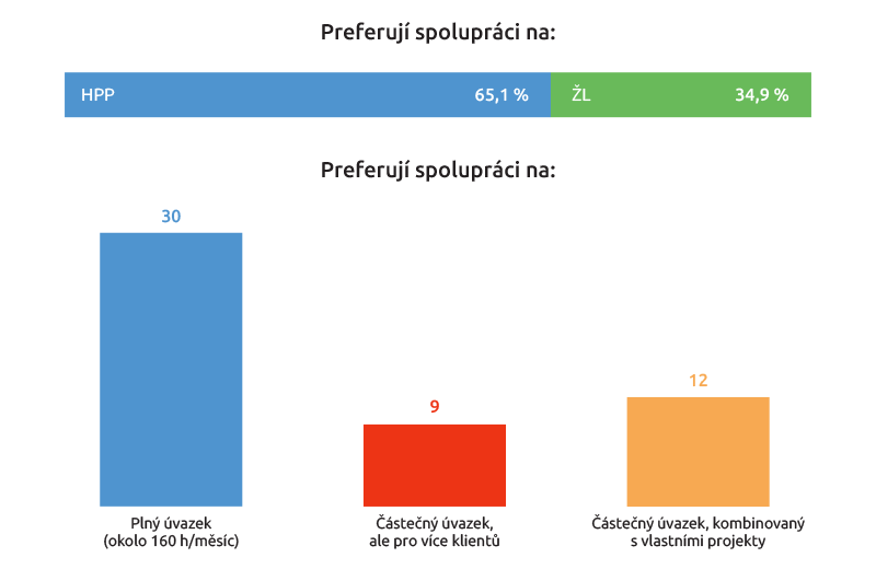 Většina z nich (65 procent) preferuje podle průzkumu práci na hlavní pracovní poměr, v otevřené otázce na úvazek se nejvíce lidí vyslovilo pro full-time.