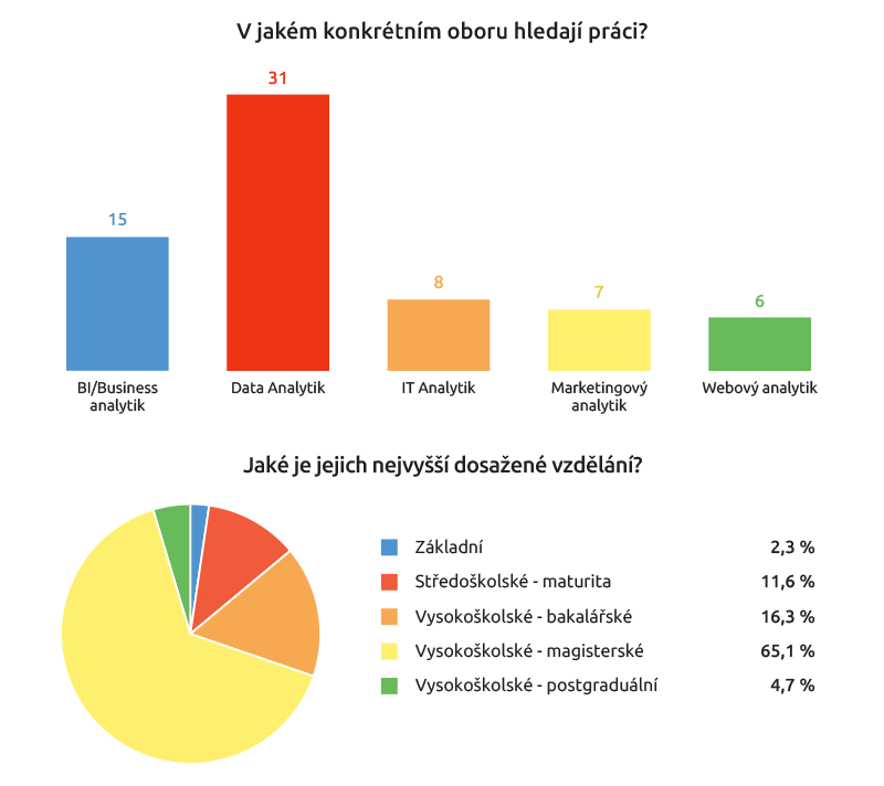 Z 1082 respondentů, který se zúčastnili průzkumu, se jich 43 označilo za analytiky. Nejčastěji se přitom jednalo konkrétně o datové analytiky, k tomu navíc převažovali kandidáti s vysokoškolským magisterským vzděláním.