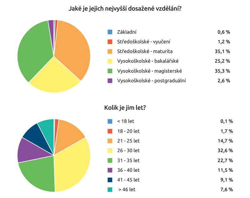 Letošní šetření probíhalo od 22. do 29. září a zúčastnilo se ho 1214 respondentů. Většině z nich (32,6 procenta) bylo tou dobou mezi 26 a 30 roky a měli dokončené vysokoškolské magisterské studium či středoškolské s maturitou. Což je srovnatelné s loňským rokem, stejně jako to, že převažoval zájem o práci v hlavním městě, případně v Jihomoravském kraji. Tam letos navíc evidujeme nárůst o 5 procentních bodů, u Středočeského kraje je to dokonce 11 procentních bodů, to ale může být dáno i tím, že v loňském roce nebyla u této otázky možnost vícečetné odpovědi.