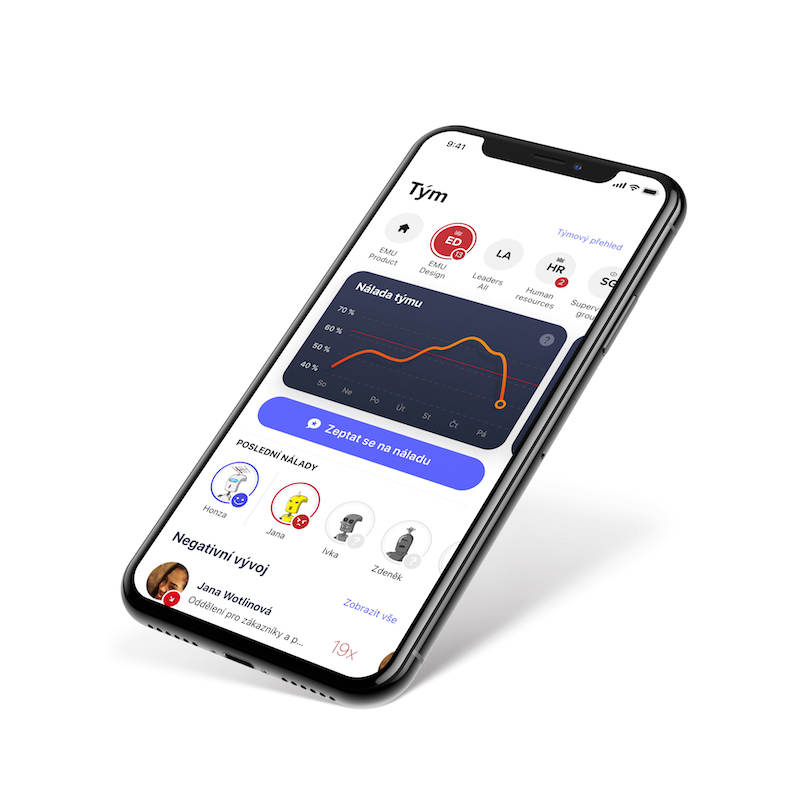 Manažer to může řešit přímo v aplikaci. Z teorie i praxe plyne, že většina problémů se dá vyřešit komunikací. Proto je v EMU přímo chat, ve kterém mohou zaměstnanci napsat podrobnosti, co není v pořádku a šéf jim přímo v ní odepíše. Manažer navíc vidí i náladu celého týmu – když lidé pod ním nebudou v pohodě, ani on logicky nebude v pohodě, protože s nižší efektivitou nesplní cíle. Může se tak podívat, jak na tom tým je, jaké jsou výkyvy, a může si rozkliknout náhled, aby se podíval, kdo náladu týmu nejvíc ovlivnil.
