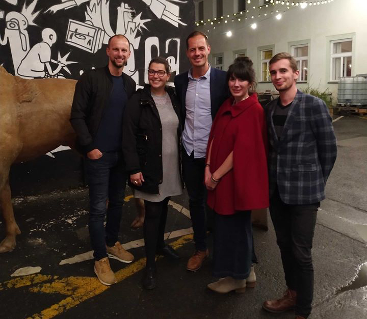 Cyril Klepek (32 let, uprostřed) a jeho tým z Cyrkl. Než Klepek Cyrkl založil, měl na starosti inovace v bance. Pak si ale řekl, že chce dělat společensky prospěšné inovace. (Foto: archiv Cyrkl)